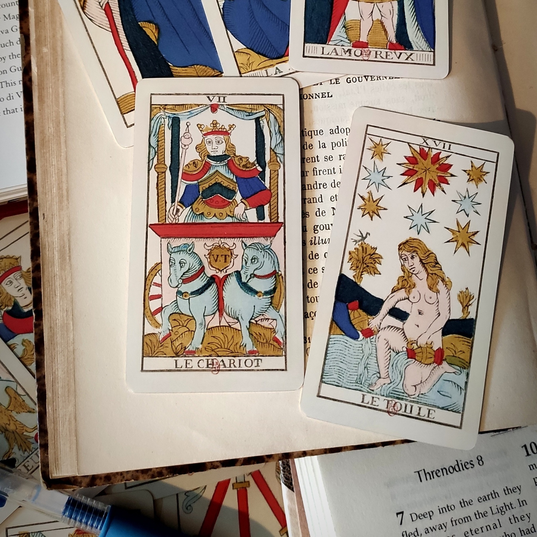 Pour comprendre comment fonctionne l’immense offre sur le marché, il suffit d’identifier les deux références fondamentales sur lesquelles se basent 99% des tarots existants. Vous choisirez alors votre « équipe » parmi les deux grandes références existantes, en fonction de ce qui vous parle le plus ; ensuite, vous saurez reconnaître à quelle « équipe » appartient tel ou tel nouveau jeu, et vous pourrez alors choisir votre chouchou en fonction de votre goût personnel.