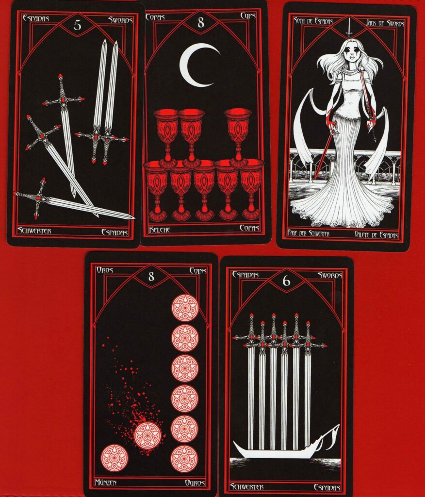 Avec son romantisme violent et agressif, ce tarot trouvera sa place pour les questions coquines, sans doute aussi les tirages fictionnels de type jeu de rôle ; pour le reste il faudra l’apprivoiser, mais ça ne fait jamais de mal de se faire remettre les idées en place, et je suis ouverte au challenge.