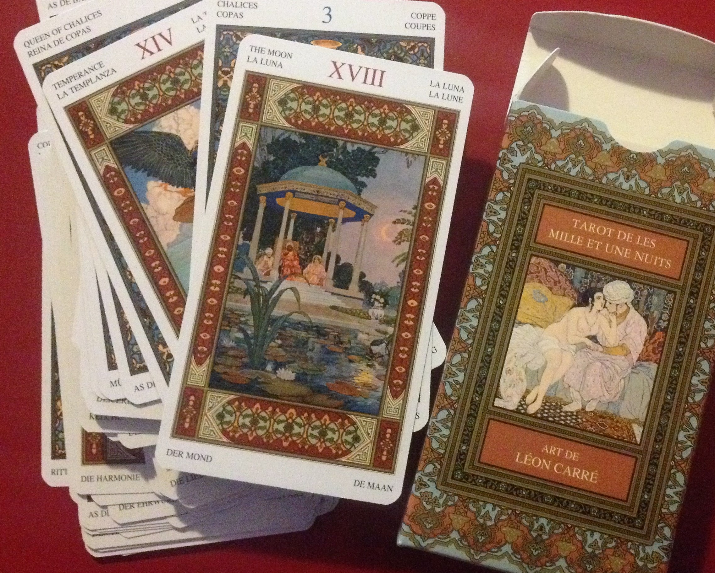 Le tarot de Waite suffit à tous les besoins, mais on a toujours l’espoir de trouver un jeu dont le graphisme nous corresponde plus personnellement, ou de regarder la vitrine ! Seulement attention, tous les jeux ne se valent pas. Un exemple : le tarot des Mille et une nuits, obtenu suite à l’envie d’un jeu qui nous ferait évoluer dans une ambiance orientale. Test complet : a-t-il quelque chose à apporter à notre pratique ?